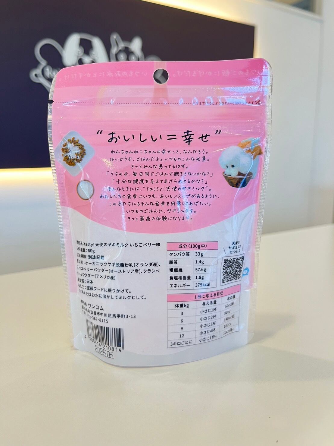 ◆原材料:ヤギ脱脂粉乳、ストロベリーパウダー