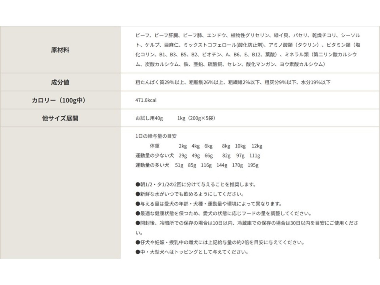 ◆給与量:画像にて掲載
